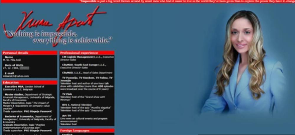 Ona je danas na visokim biznis pozicijama, što se može videti na njenom sajtu na kojem se pohvalila i mnogobrojnim diplomama, kao i oblastima u kojima je ekspert.