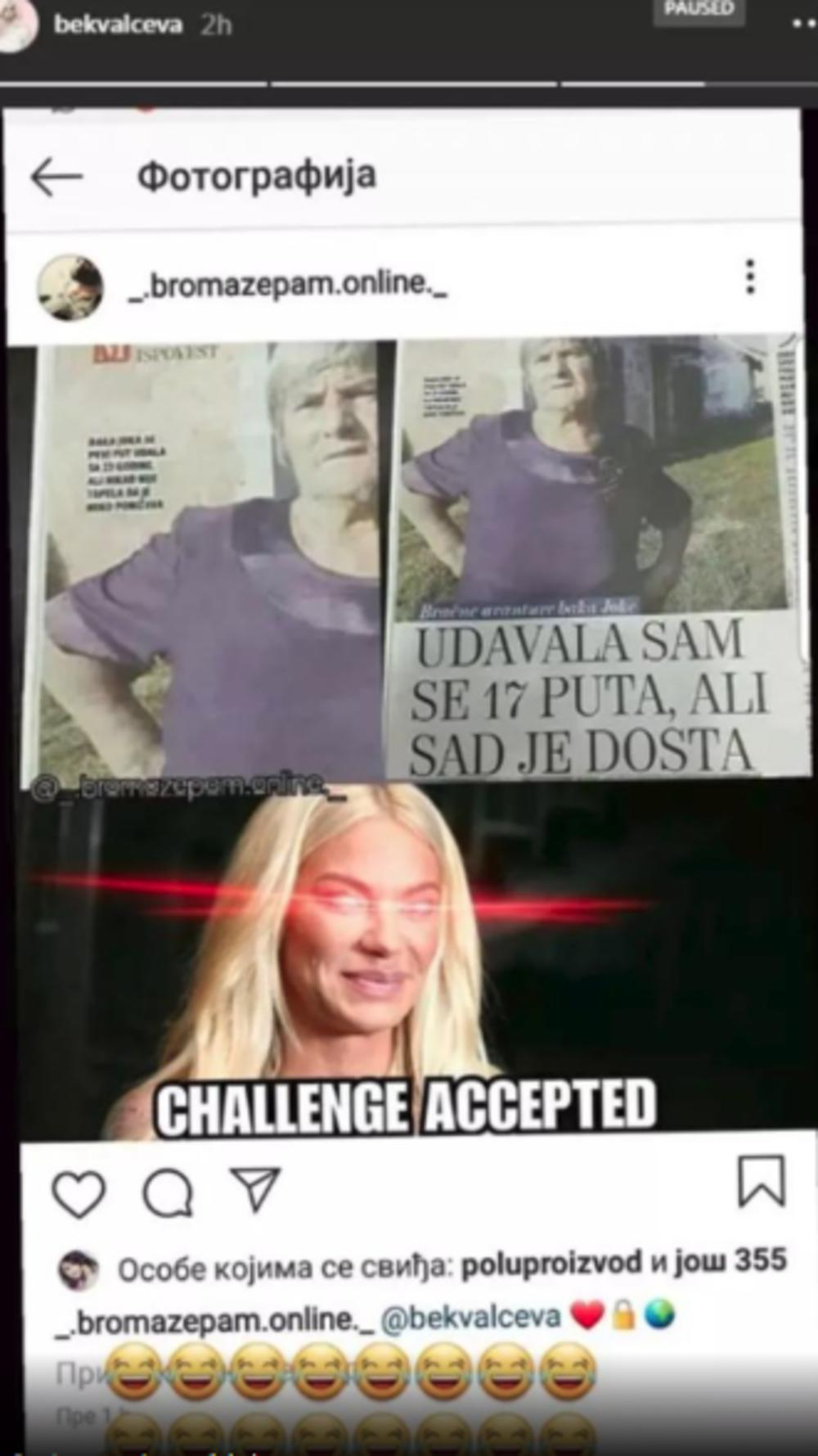 Bekvalčeva je uz ovu fotografiju dodala i mnogo smajlija koji se smeju do suza, što znači da joj se ova šala na njen račun veoma svidela. Ovo se takođe svidelo i njenim mnogobrojnim fanovima, koji su se takođe slatko nasmejali.