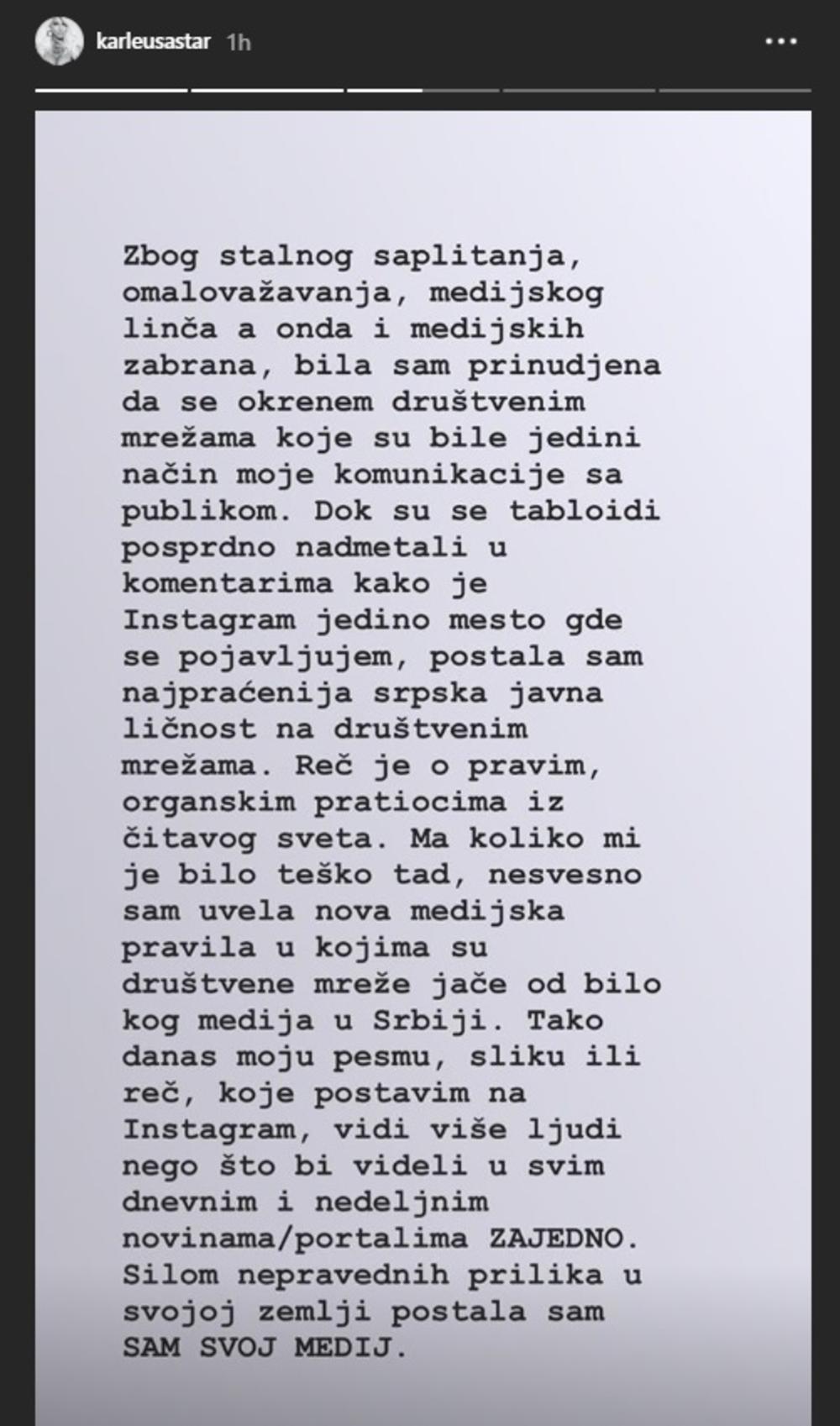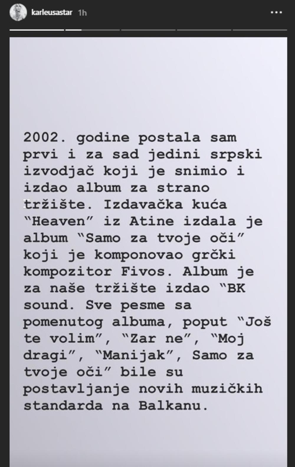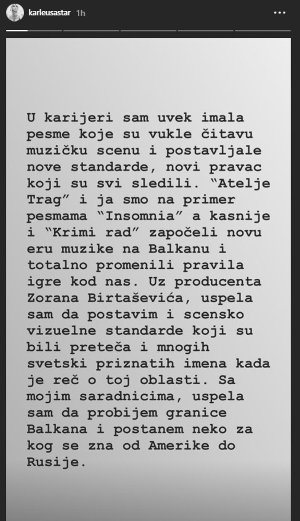 “ Uspela sam da probijem granice Balkana i postanem neko za kog se zna od Amerike do Rusije“, zaključila je Karleuša na Instagramu.