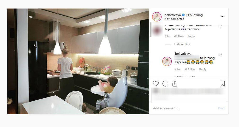 Nataša Bekvalac objavila je fotografiju iz kuhinje, a korisnici društvenih mreža odmah su počeli da pišu neprikladne komentare.