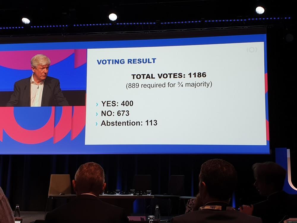 Na sastanku u Oslu RTS je uspeo da se izbori da oni ne budu primljeni u ovu organizaciju kao punopravni član, pa zbog toga i dalje neće moći da učestvuje na izboru za Pesmu Evrovizije.