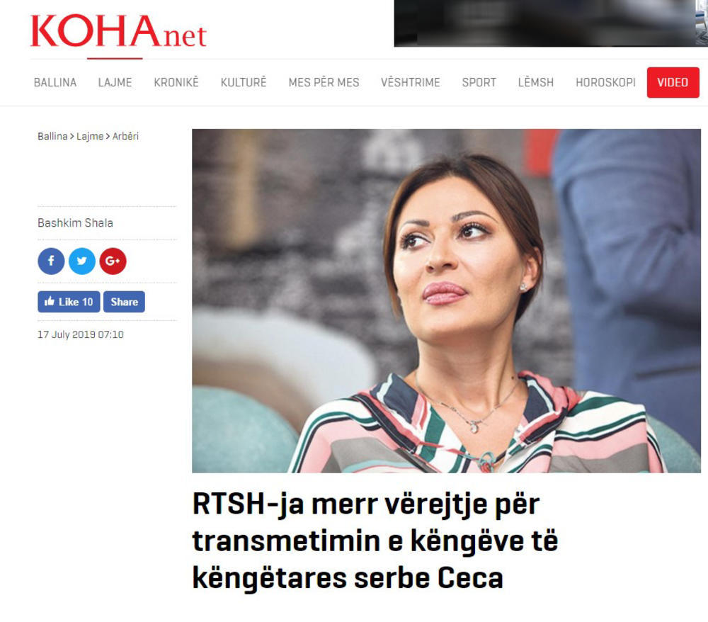 Nakon što je izbio skandal na Kosovu i u Albaniji zbog toga što je albansko telo za audio i video medije (AMA) upozorilo je Javni servis Albanije (RTŠ) zbog puštanja pesama srpske pevačice Svetlane Cece Ražnatović, oglasila se i navodi da je u pitanju klasična manipulacija i da njene pesme oduvek šire isključivo ljubav.