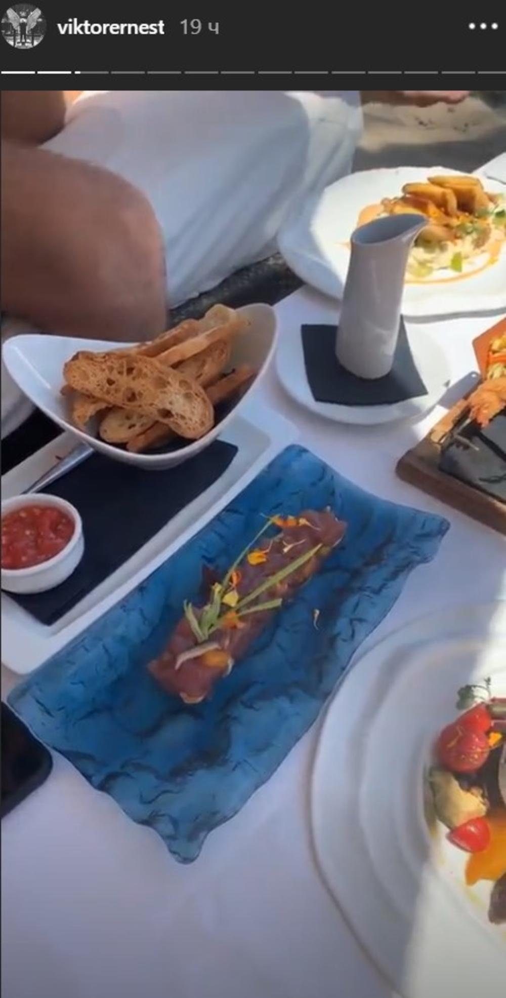 Viktor je svojom kamerom zabeležio i na društvenim mrežama objavio snimke sa glisera i jahte, a tu se, naravno, našla i obilna trpeza prepuna delikatesa na plaži.