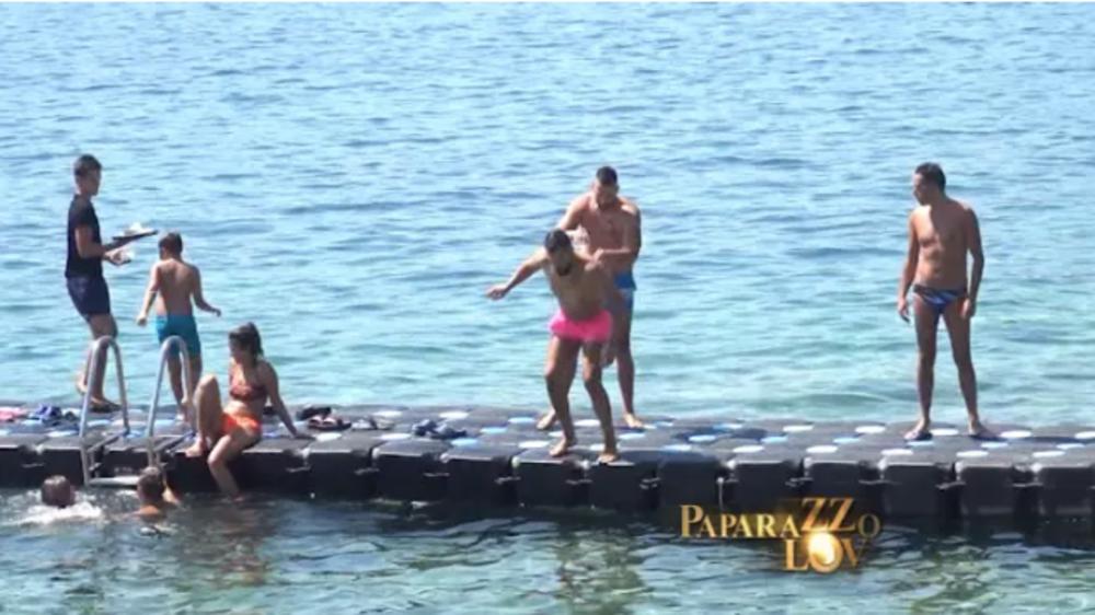 Njih dvojica su odlučili da prošetaju stazom, pokažu mišiće, istetovirano telo i zaplivaju u moru. Tako mokri i preplanuli mamili su uzdahe svih pripadnica nežnijeg pola, a kako bi još više "upadali u oči" svim posetiocima plaže, oni su se i zaigrali u vodi.