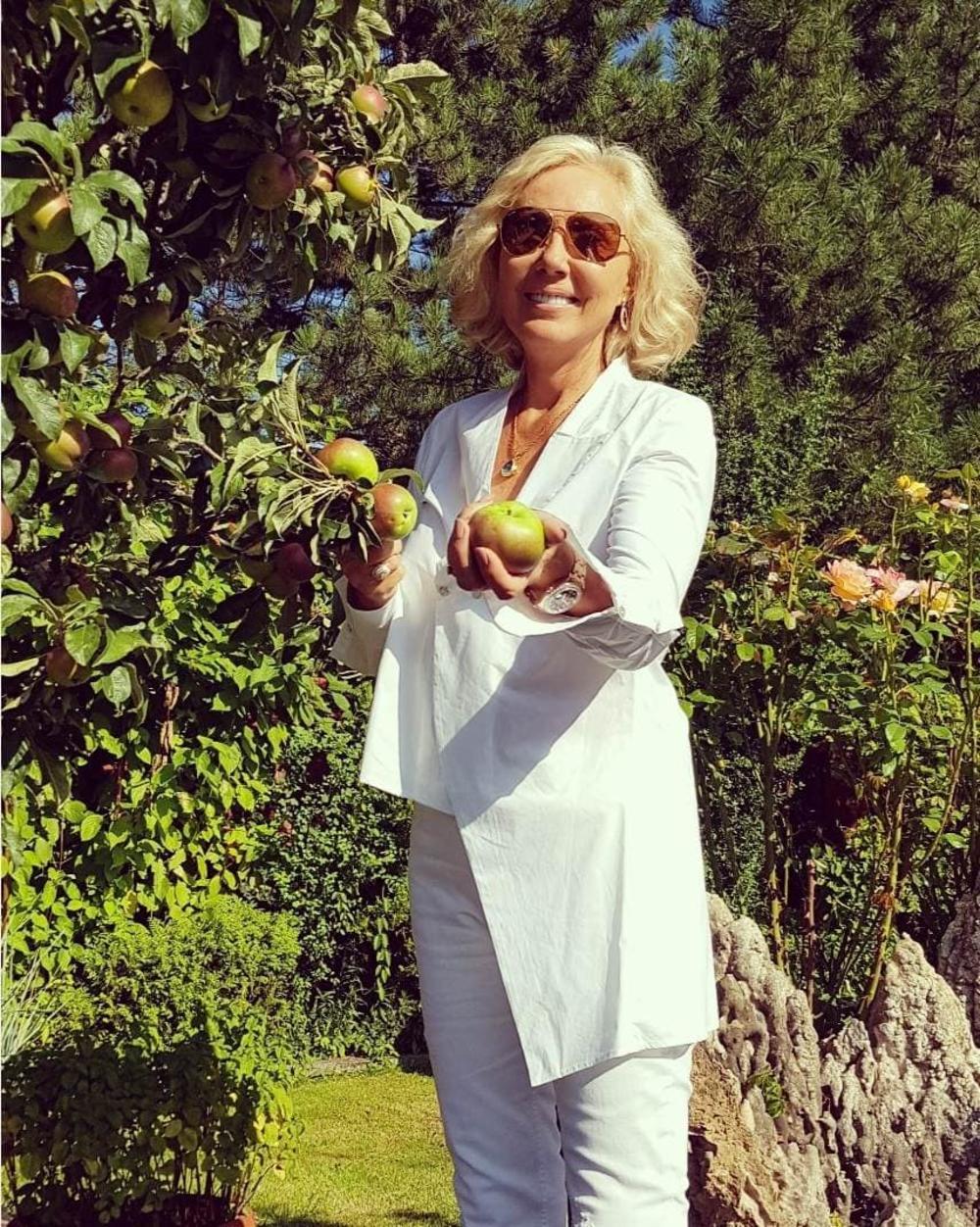 Ona još uvek nije otišla na čuveno žensko krstarenje koje praktikuje svake godine s drugaricama, pa se opušta u svom voćnjaku.