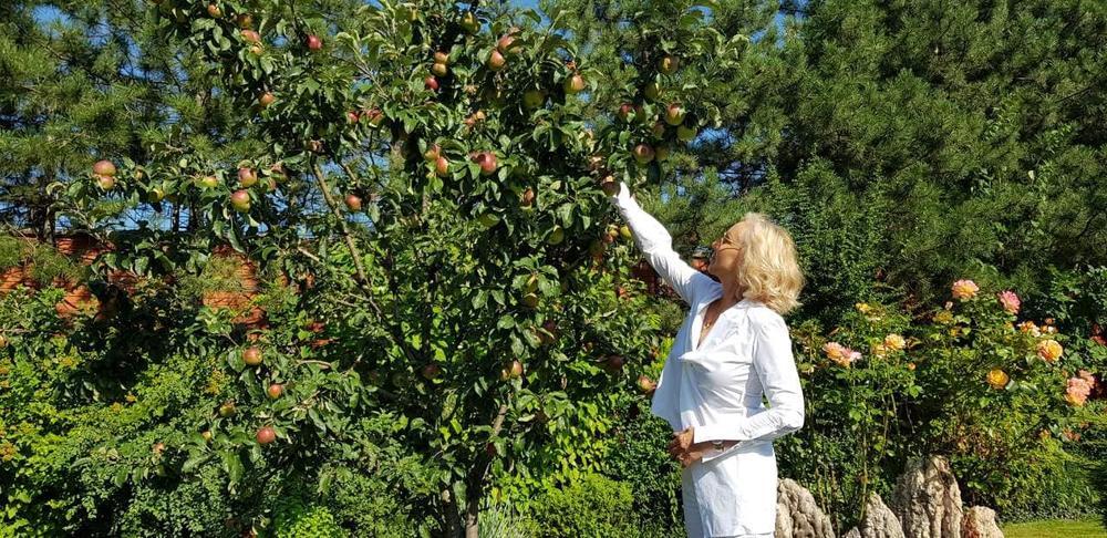 Lepa Brena posebno je ponosna na nekoliko stabala jabuka iz njenog dvorišta, koje svake godine rode u tolikoj meri da moraju da ih dele komšijama i ljudima koji dolaze kod njih u goste.