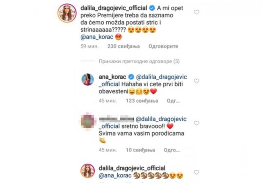 Vest o Aninoj mogućoj trudnoći stigla je, dakle, do njene jetrve Dalile putem medija, pa je ona odmah rešila da Koraćevoj pošalje poruku na Instagramu.