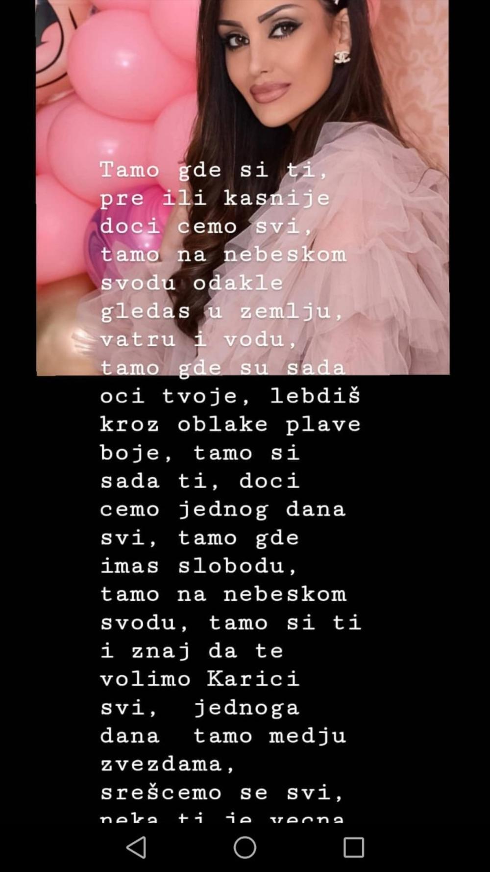"Otišla si mila moja... hvala za svaku lepu reč i osmeh... volim te, zauvek...", poručila je potresena Aleksandra Živojinović, naočigled u neverici zbog tužnih vesti.