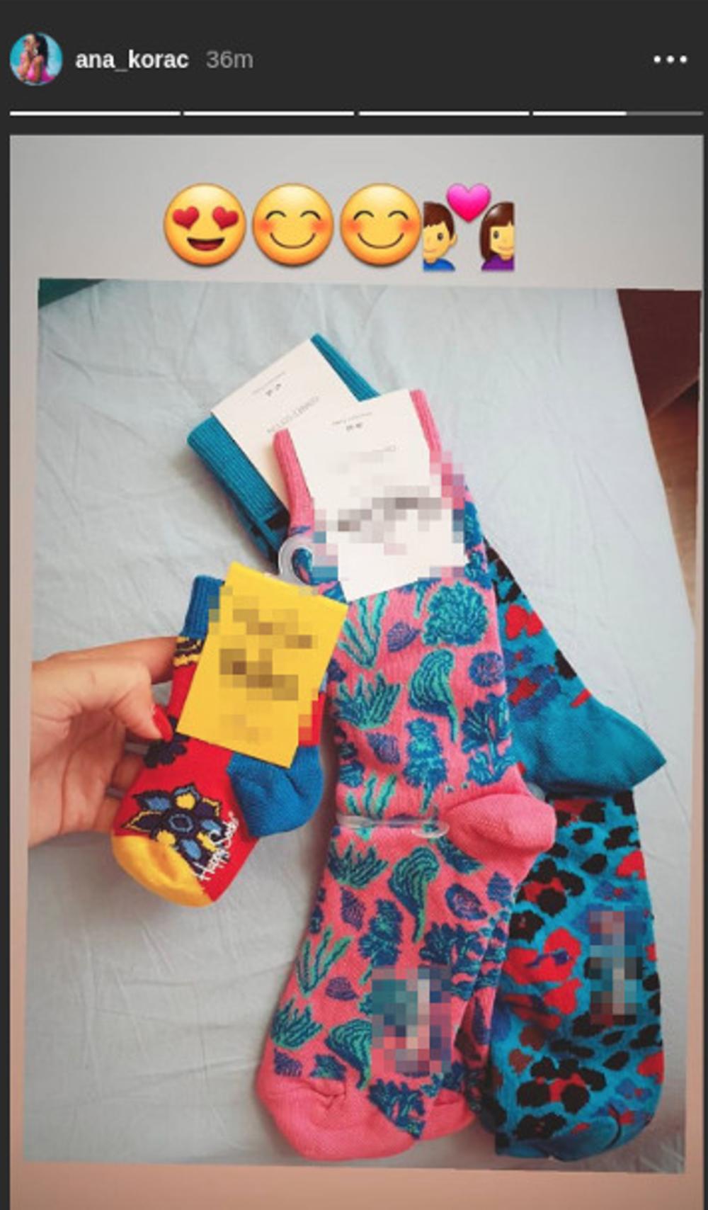 Nakon povratka iz kupovine, Ana je svoje pratioce obradovala fotografijom na kojima se vidi da je kupila tri para čarapa. Međutim, jedne su male kao za bebu. U opisu je stavila emotikon zaljubljenog para te je navela mnoge da pomisle da ovim potezom potvrđuje priču da je trudna i da će David i ona postati roditelji.