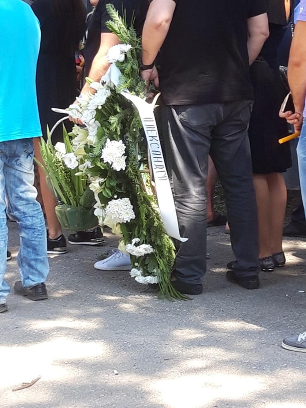 Aleksandra je donela venac belih kala, a na lenti stoje dve jednostavne reči u kojima se vidi sva tuga koju pevačica oseća zbog gubitka prijateljice - "Tvoja Aleksandra".