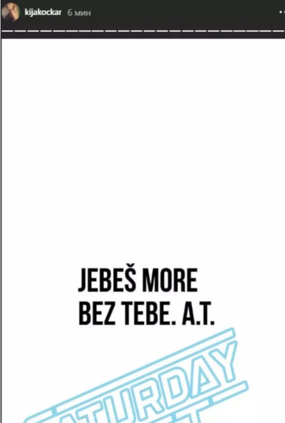 Pevačica je citirala osobu sa inicijalima A.T. čije reči glase "J*beš more bez tebe". Kija je ovako direktno priznala da joj fali osoba koja nije pošla sa njom na more. Da li će joj se misteriozna osoba pridružiti, ostaje da vidimo.