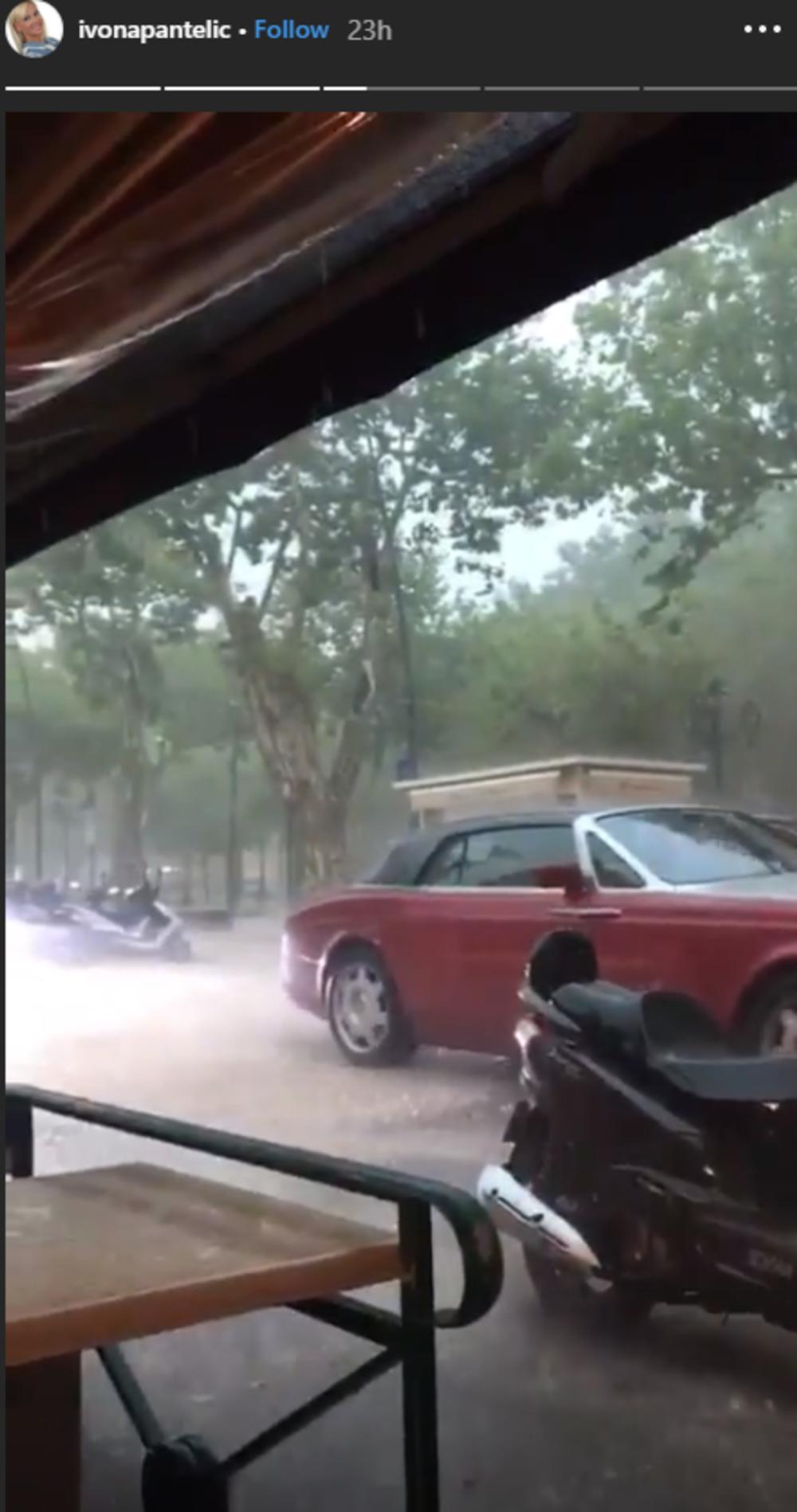 Ivona se tokom nevremena zatekla u kafiću koji je bio poplavljen, pa je voditeljka morala da se izuje i podigne noge na stolicu.