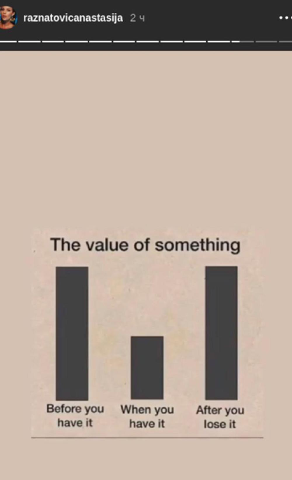 Naime, Cecina ćerka objavila je sliku na kojoj je grafički prikazano koliko cenimo stvari u životu, te se jasno vidi da ih najviše cenimo upravo onda kada ih izgubimo.