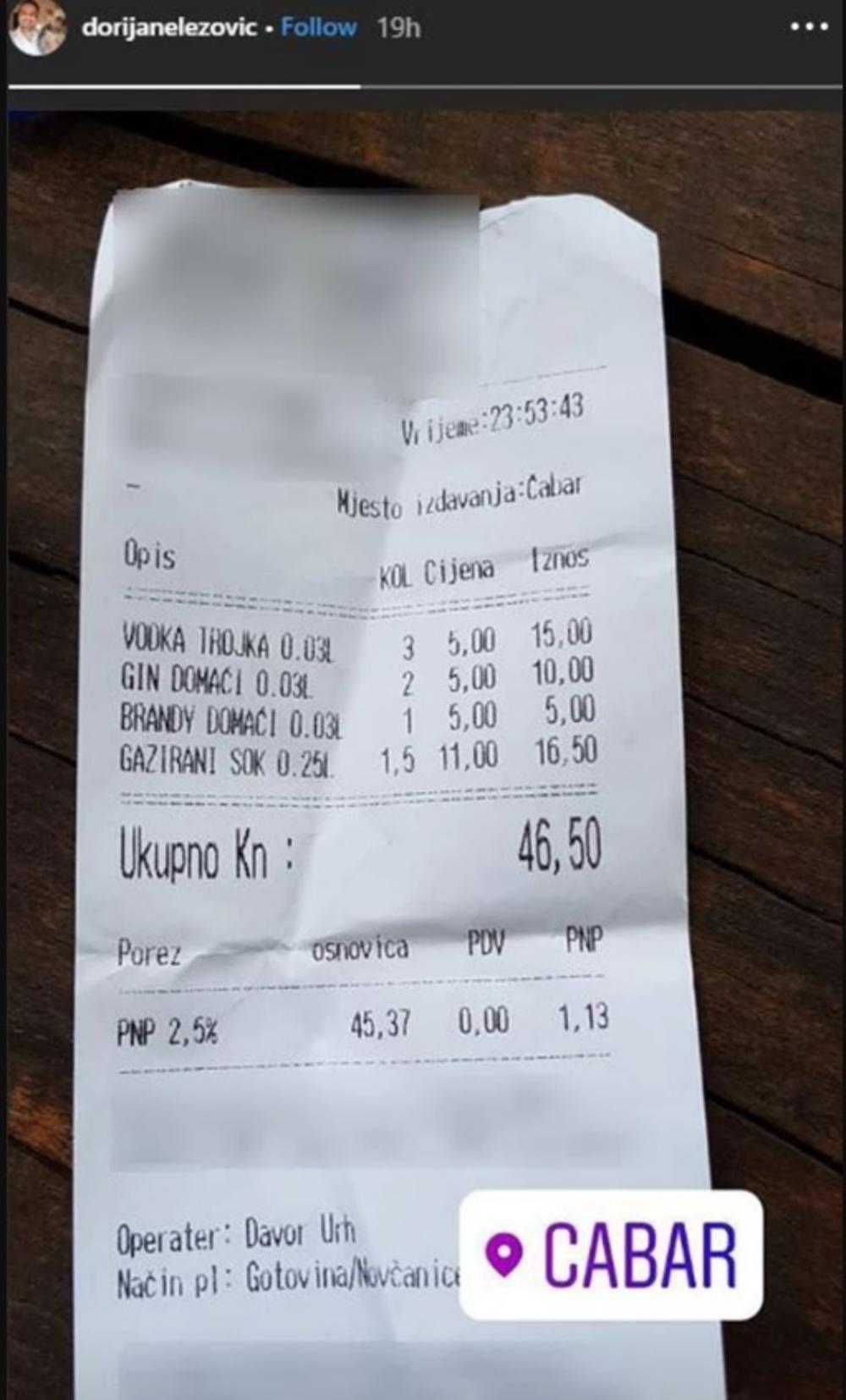 - Dok se svi čude cenama na moru, ja sam mislio da me u Čabru neko zeza! - pohvalio se Dorijan koji je na društvenim mrežama objavio i fotografiju računa.