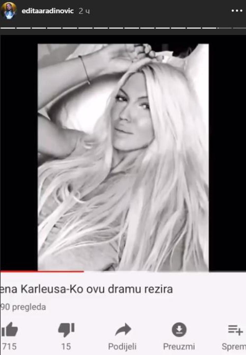 Aradinovićeva nije ostala imuna na koleginičino oglašavanje, pa je na istoj društvenoj mreži objavila Karleušinu pesmu "Ko ovu dramu režira, nek moje ime ne dira..."