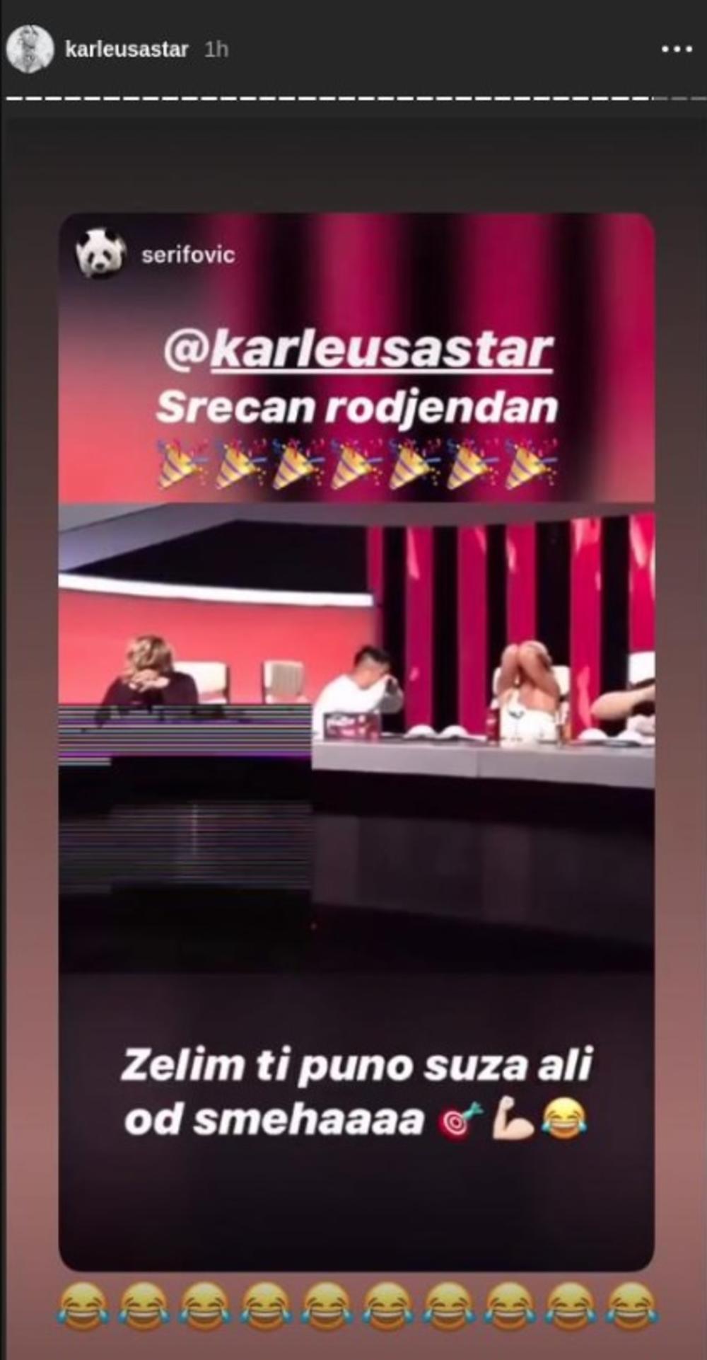 - Želim ti puno suza, ali od smeha - napisala je Marija, dok je Karleuša čak dva puta objavila ovu njenu čestitku... - napisala je pevačica.