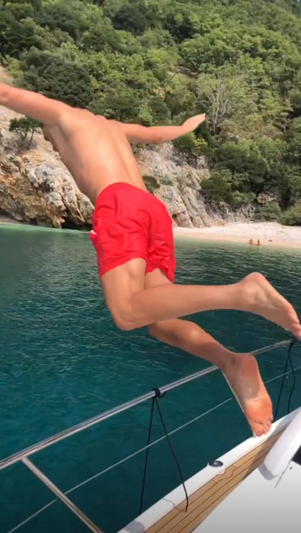 Dok Jelena na svojim slikama i snimcima pokazuje koliko uživa na Hrvatskom primorju, isto to uradio je i Duško, koji je nakon odličnog skoka na glavu sa Saletove nove jahte objavio i sliku sa njim.