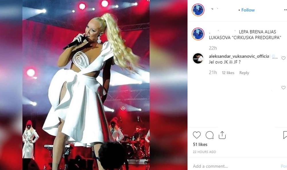 Zanimljivo je da Lukasove uvrede u kojima je pisao da je Lepa Brena "protuva istrošena", kao i da je njen koncert "cirkus", na Instagramu lajkovala i zvezda "Granda" Aleksandra Bursać, ali se brzo pokajala.