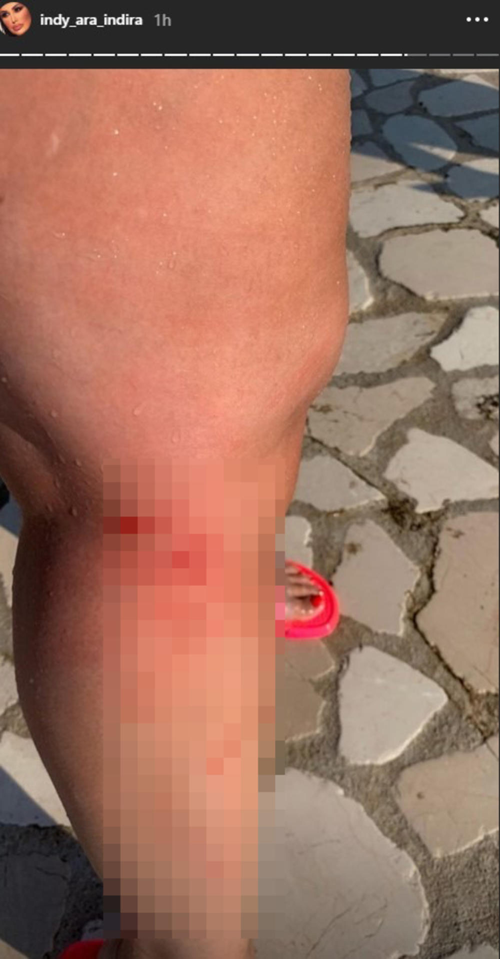 Indira Aradinović Indi oglasila se na svom Instagramu povređena, a fotografije bi bile uznemirujućeg sadržaja, da se na poslednjoj nije nasmejala pa pokazala da situacija ipak nije toliko ozbiljna.