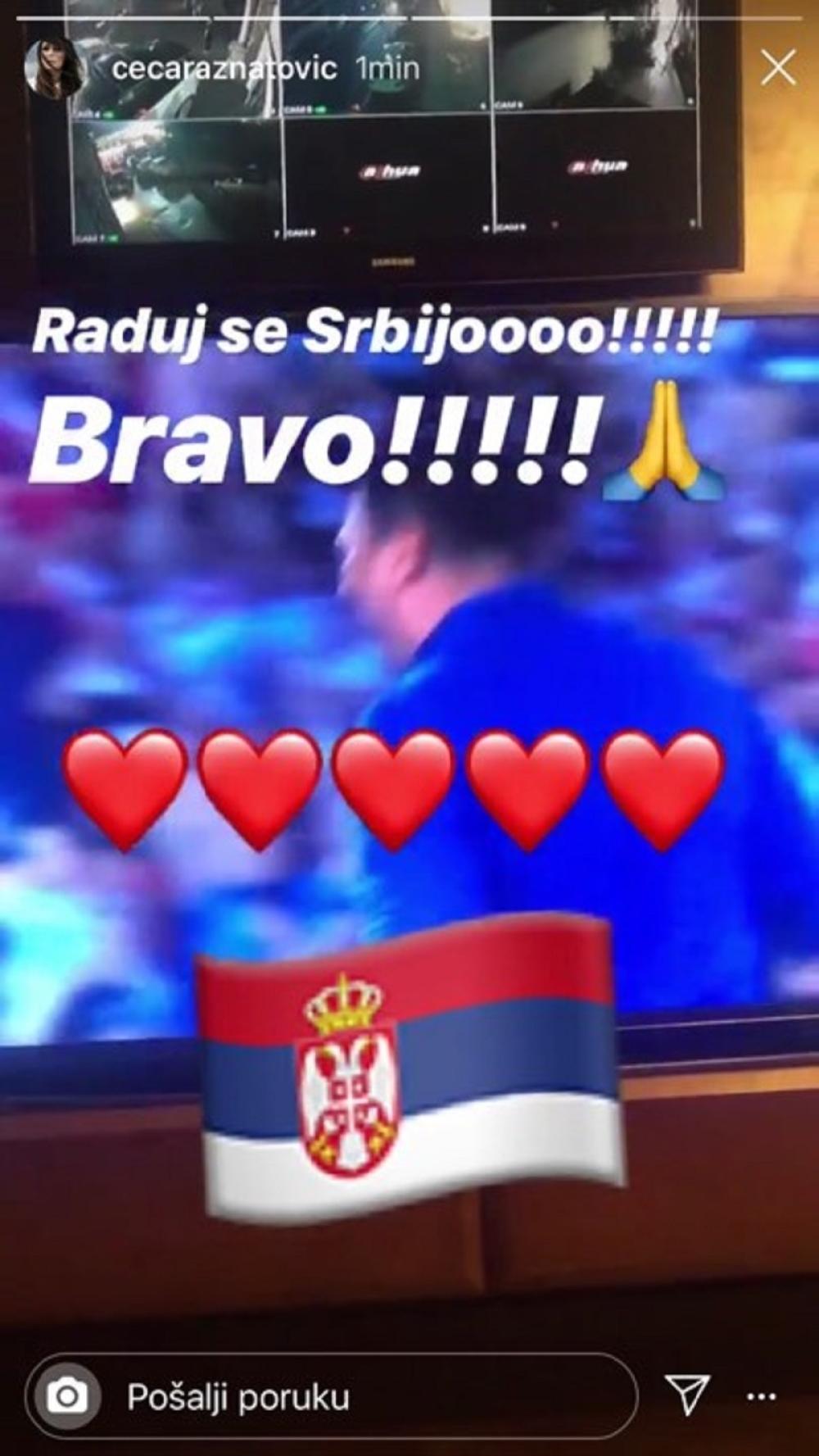 "Raduj se Srbijo! Bravo", napisala je pevačica i u opisu fotografije stavila emotikone srca ali i srpsku zastavu.