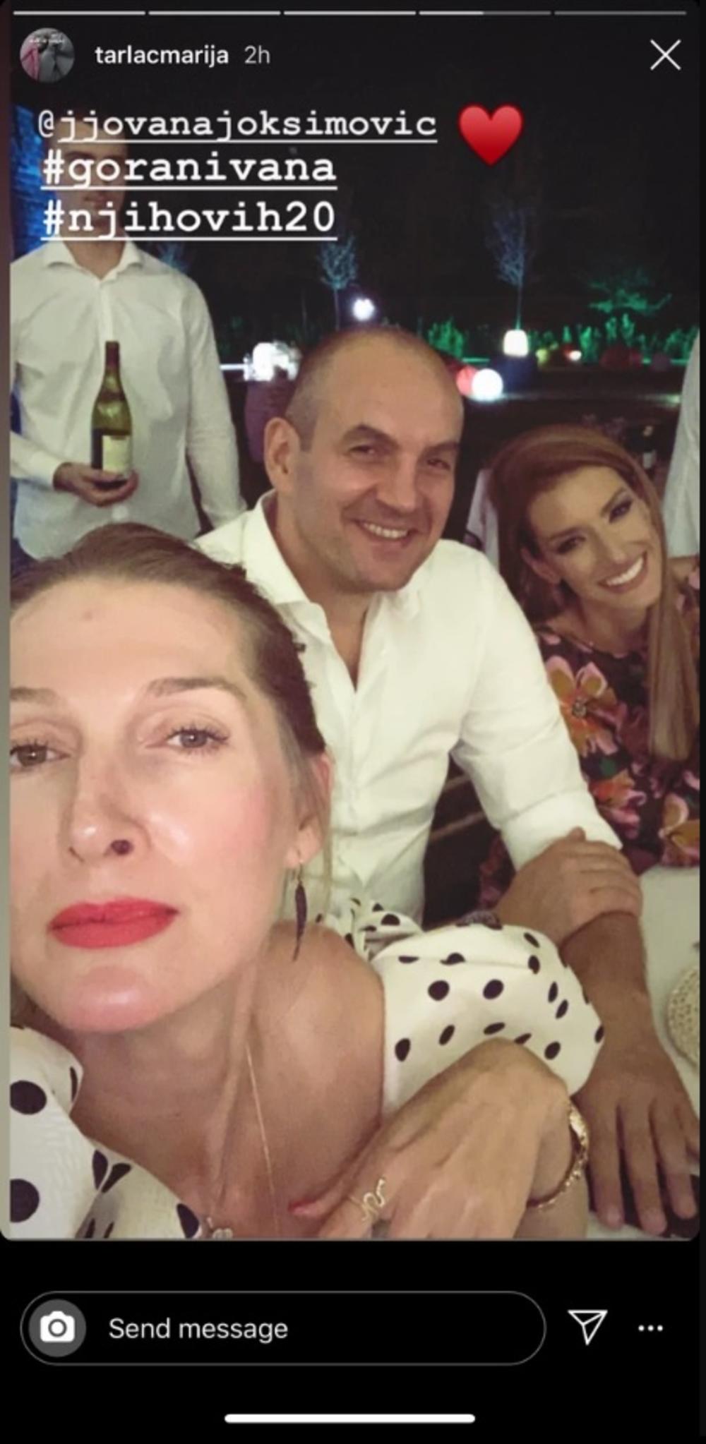 Na sinoćnoj proslavi povodom dvadeset godina braka Gorana Karića i Ivane Mišković Karić pojavila se i nekadašnja manekenka i dizajnerka Marija Tarlać, ali i atraktivna voditeljka jutarnjeg programa Jovana Joksimović koja je bila zvezda večeri.