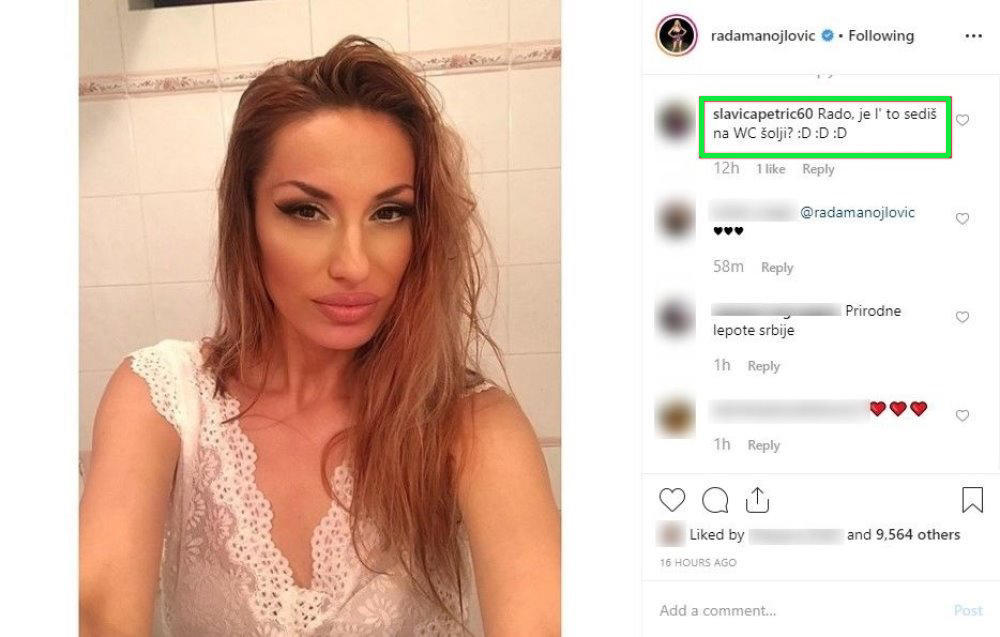 "Rado, je l' to sediš na WC šolji", napisao je jedan od njenih pratilaca.