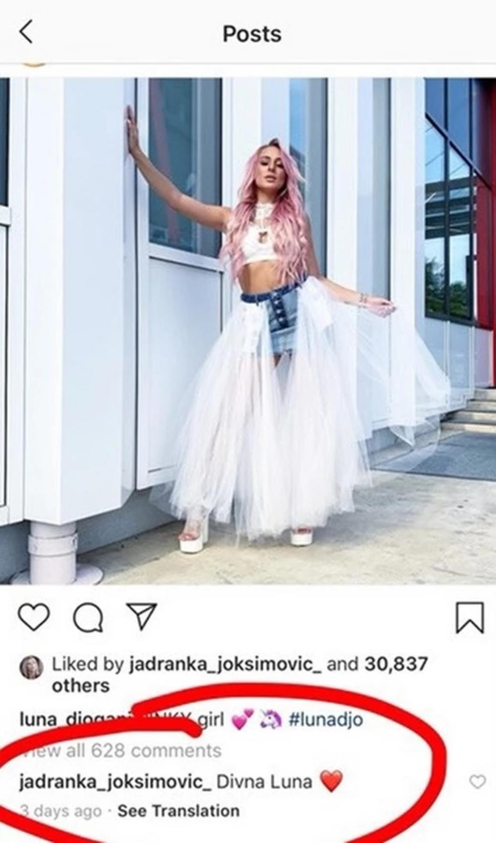 Naime, Jadranka je ispod druge Lunine fotografije napisala: "Divna Luna".