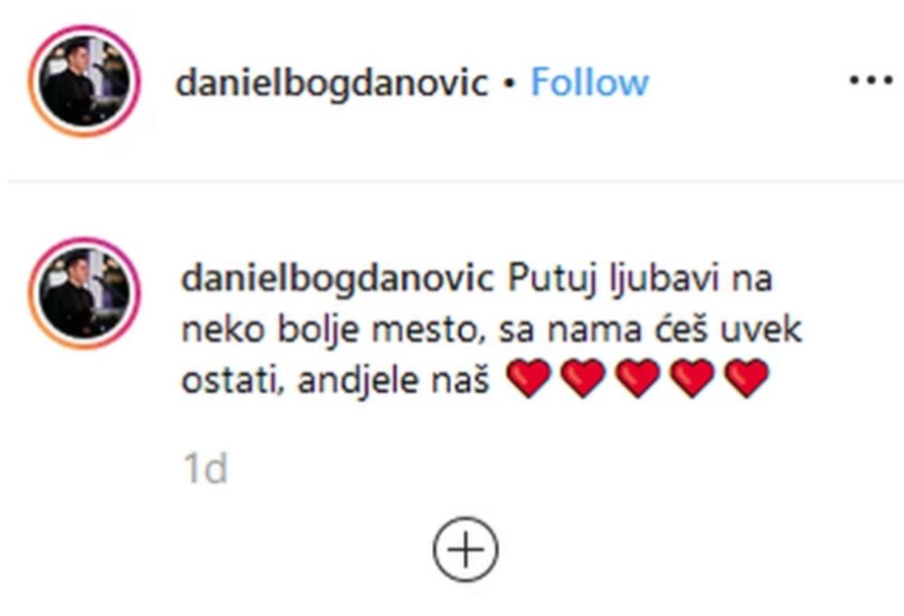 - Putuj ljubavi na neko bolje mesto, sa nama ćeš uvek ostati anđele naš- napisao je Daniel, koji je bio član grupe "Mag" devedesetih godina.
