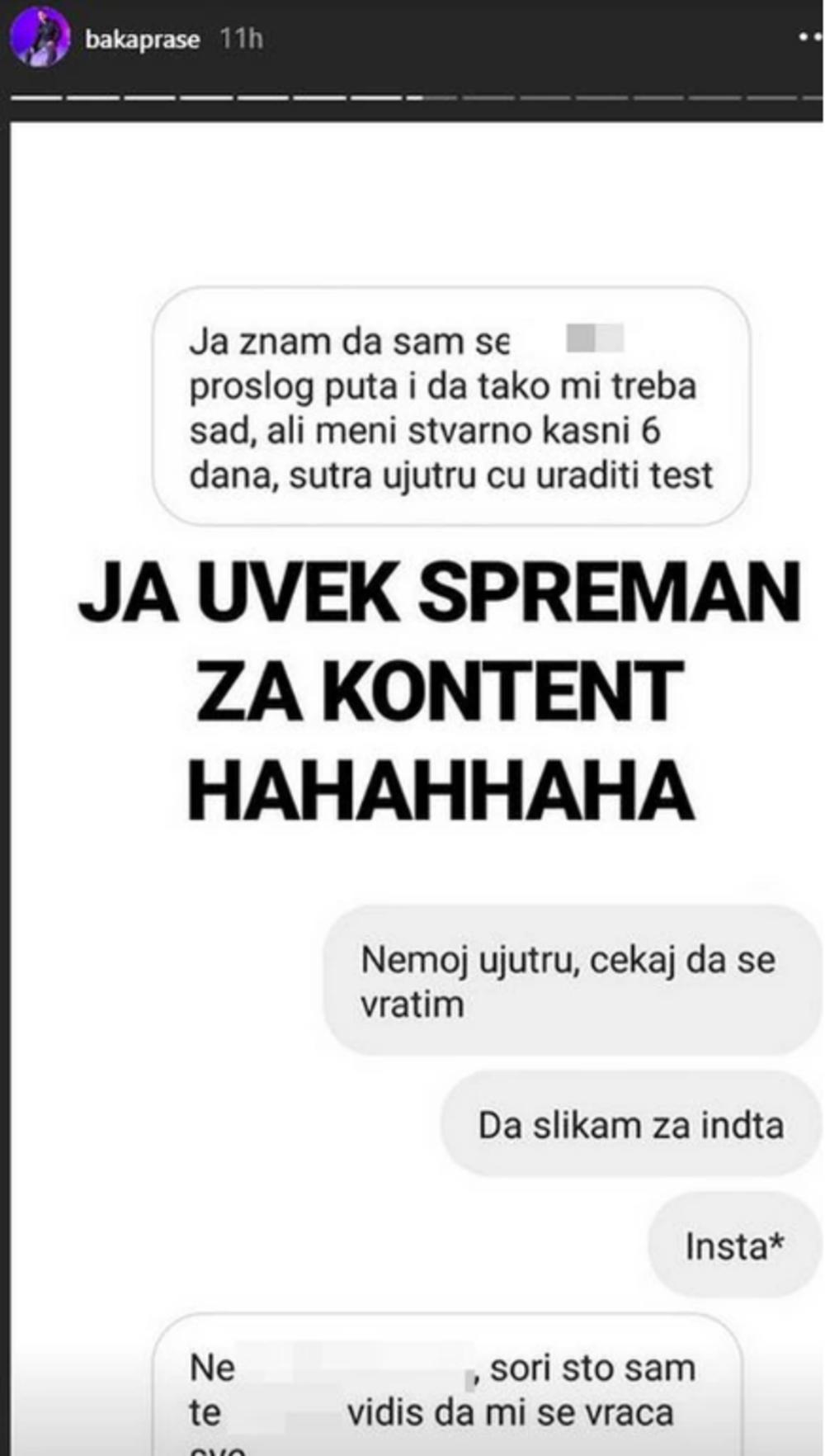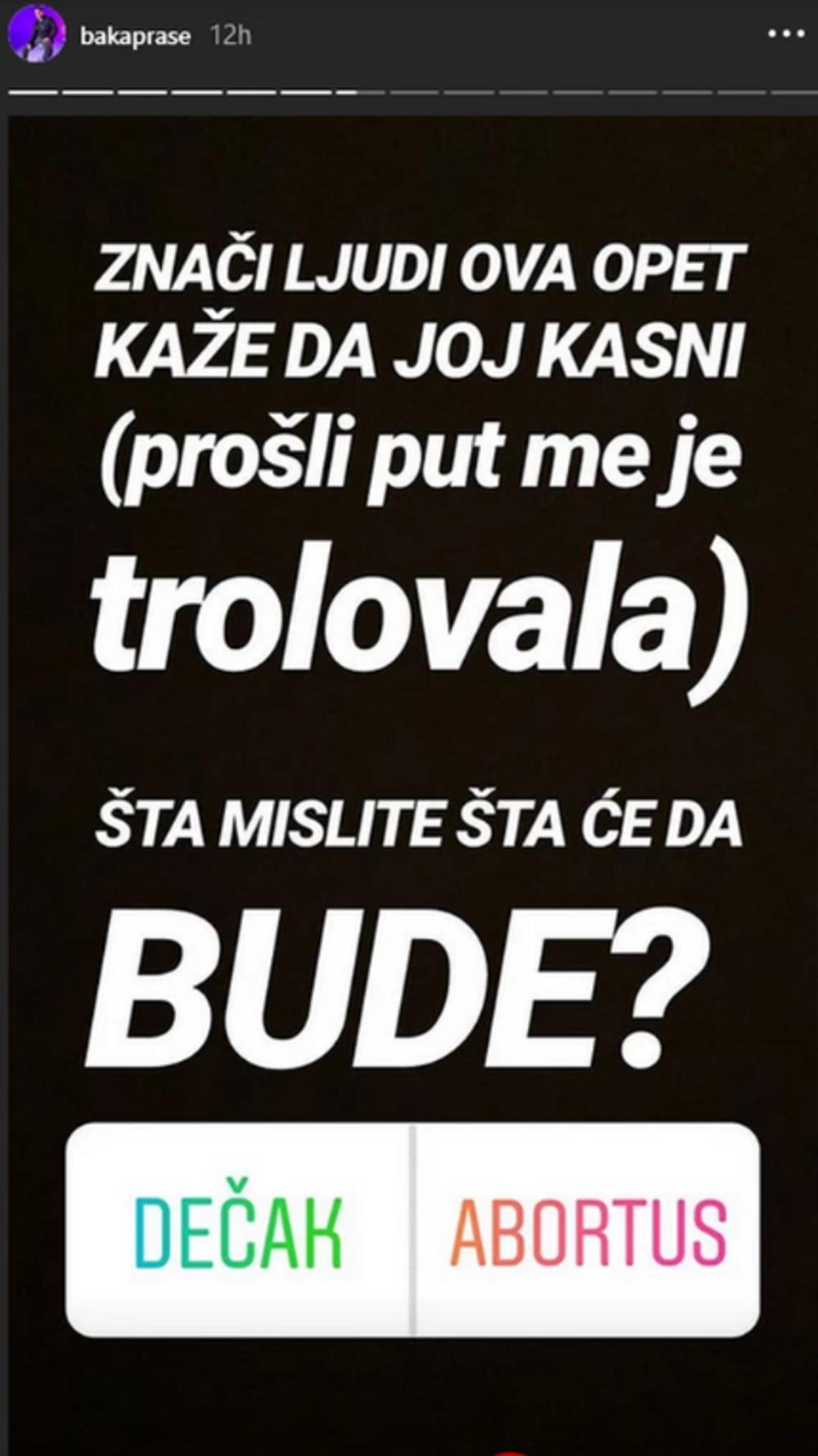 Naime, on je na Instagram storijima objavio anketu i nekoliko statusa u kojima je napisao da mu je "ova" , misleći na svoju devojku, trudna.