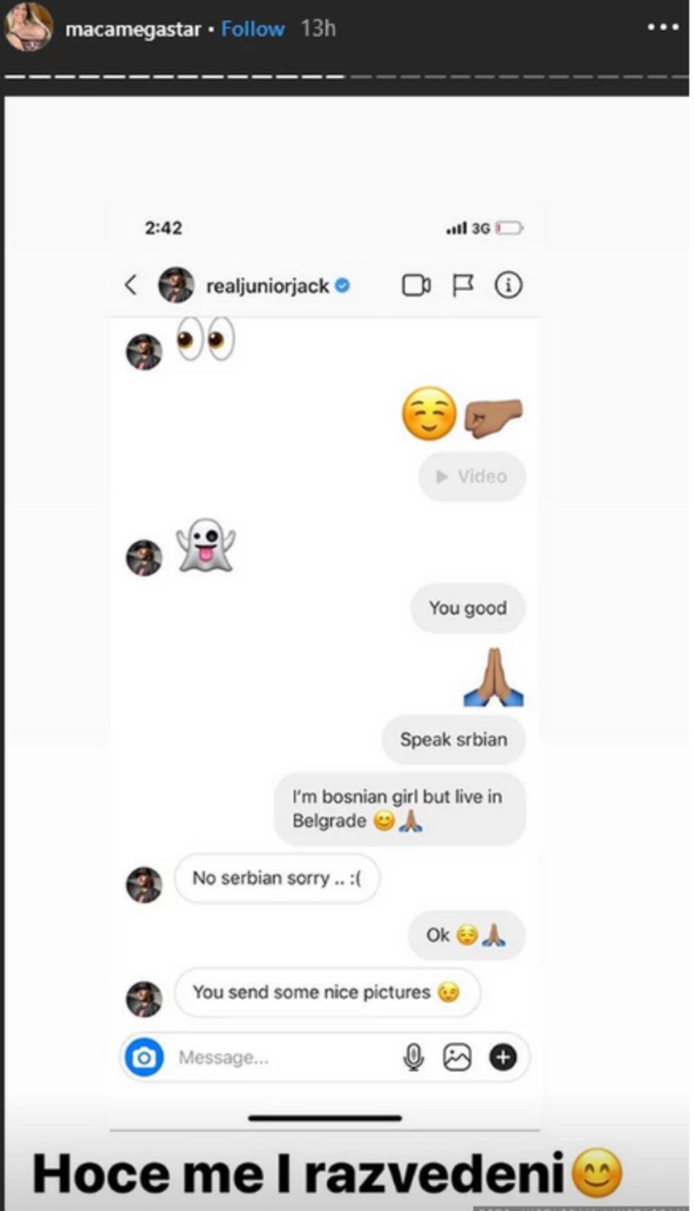 Podsetimo, Maca Diskrecija je na svom Instagram profilu bez trunke blama obelodanila je prepisku sa Džunior Džekom.