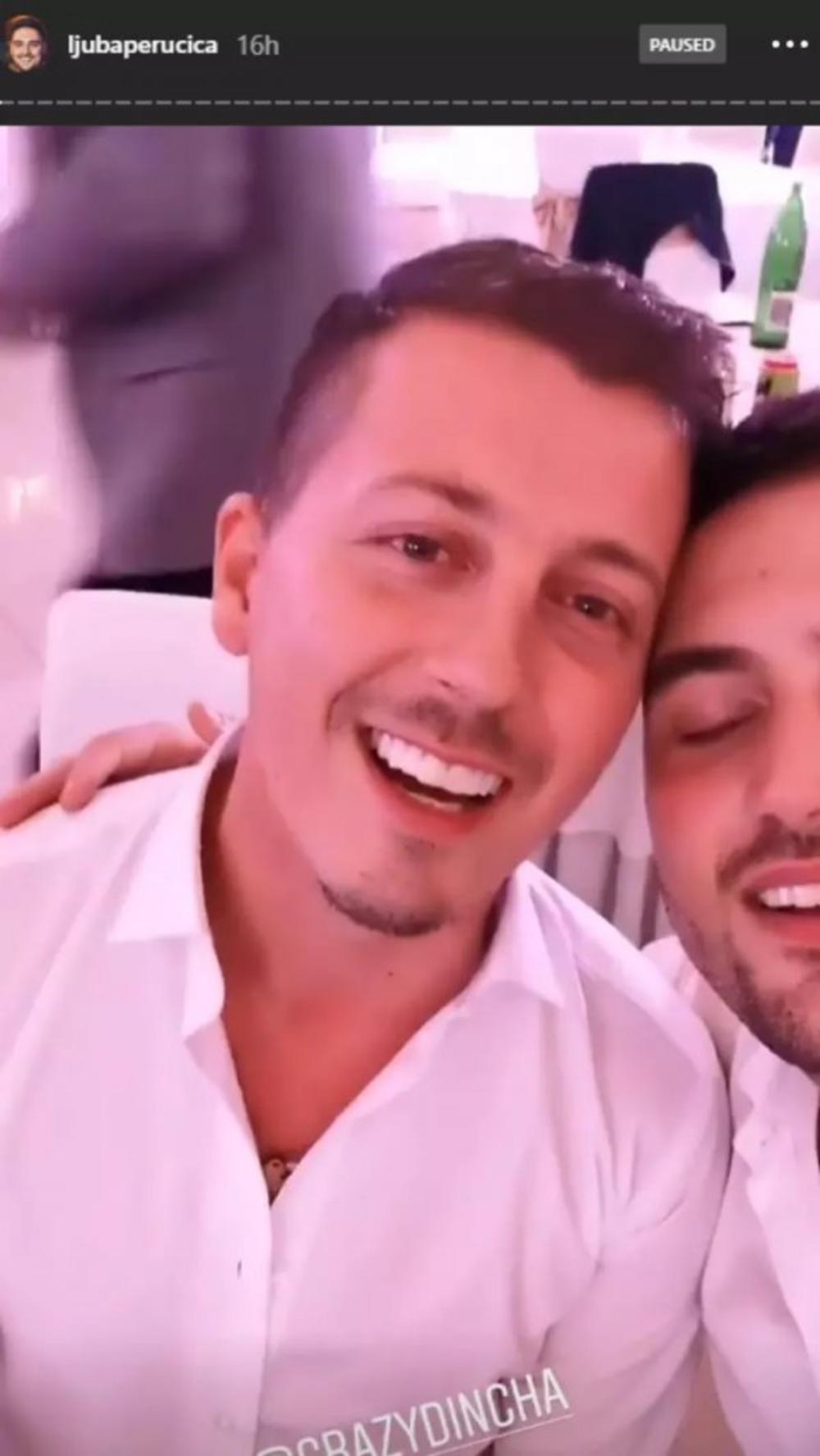 Među gostima bio je i Perućicin kolega i veliki prijatelj Milan Dinčić Dinča, koji je na samom kraju proslave, kada su skoro svi gosti već otišli, zapevao Ljubi na uvce.