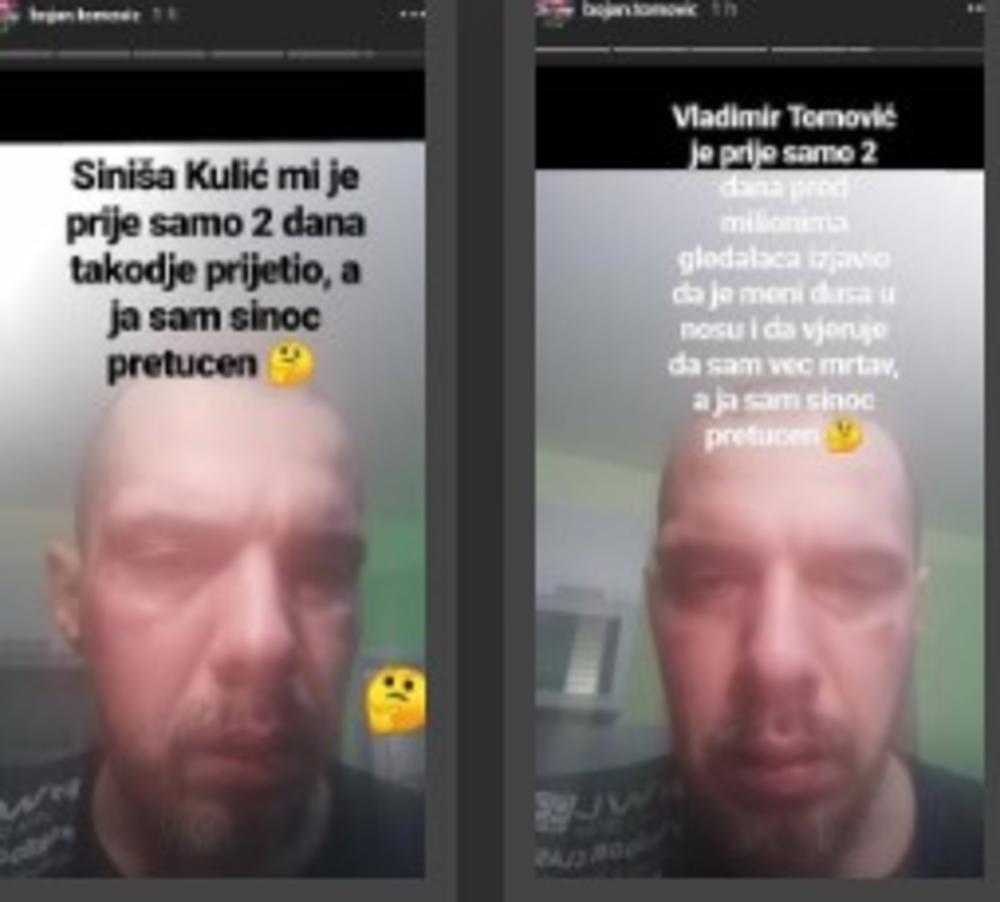 Međutim, rano jutros na Instagramu je podelio iste fotografije ali je uz njih napisao i direktno optužio Vladimira Tomovića i oca Marije Kulić, Sinišu, da su mu namestili batine, nigde ne spominjući da je uzrok prebijanja njegova vera ili crnogorski predsednik.