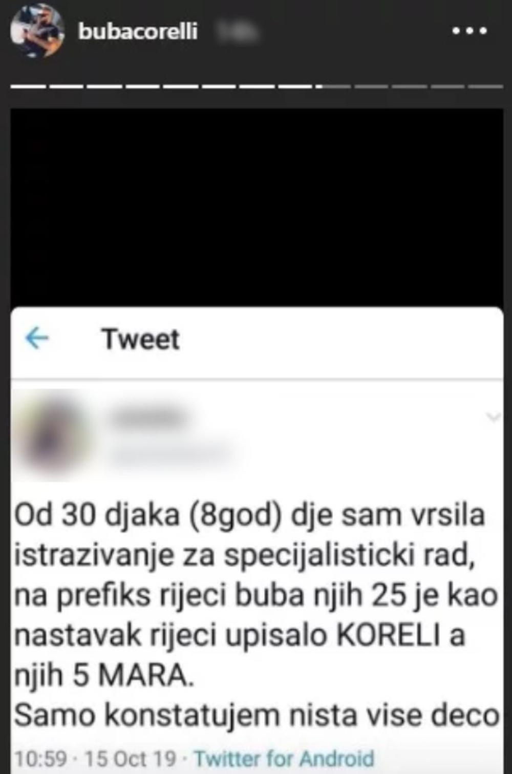 Tu njenu objavu video je i sam Buba Koreli, koji ju je ponosno objavio na svom Instagram profilu.