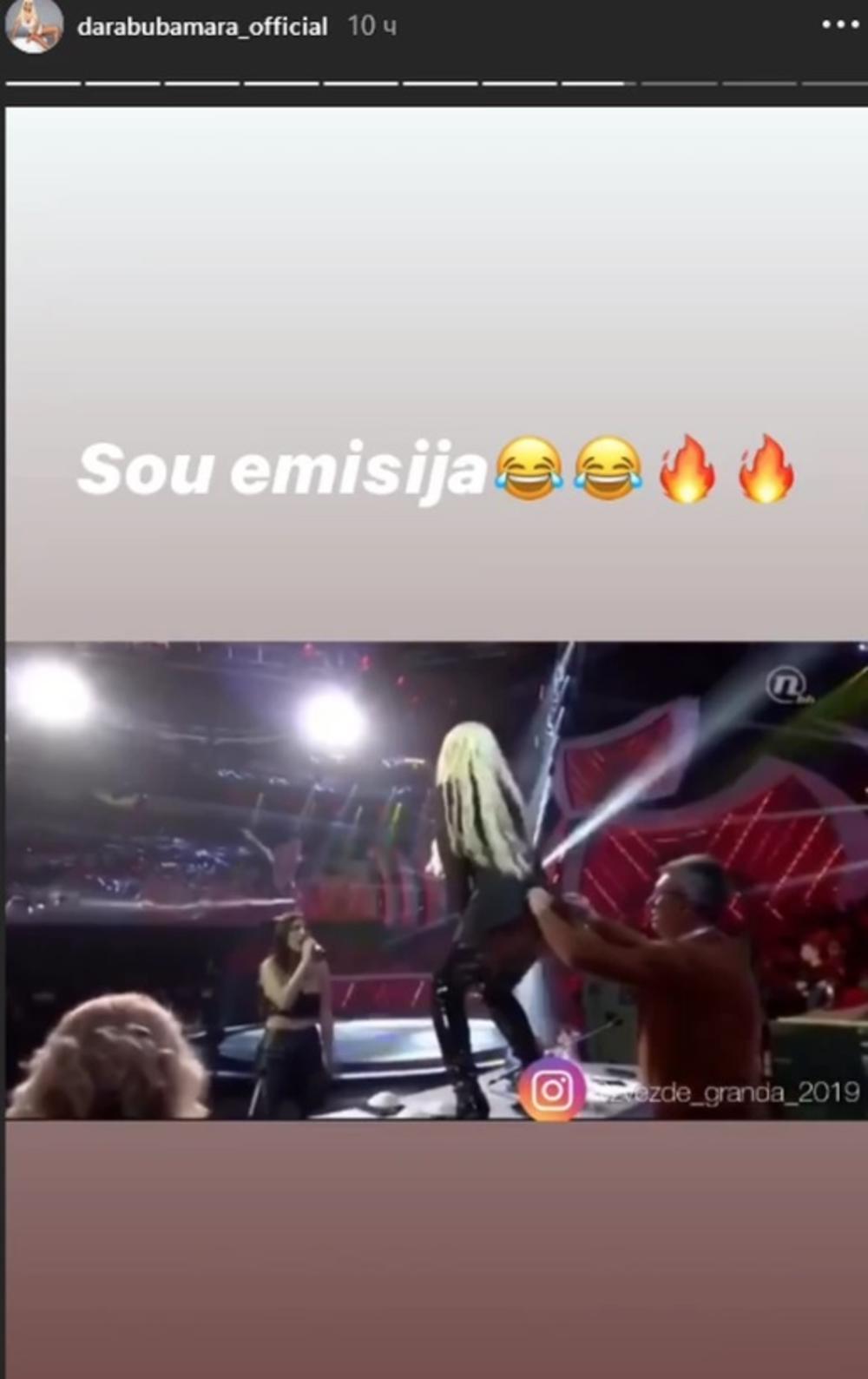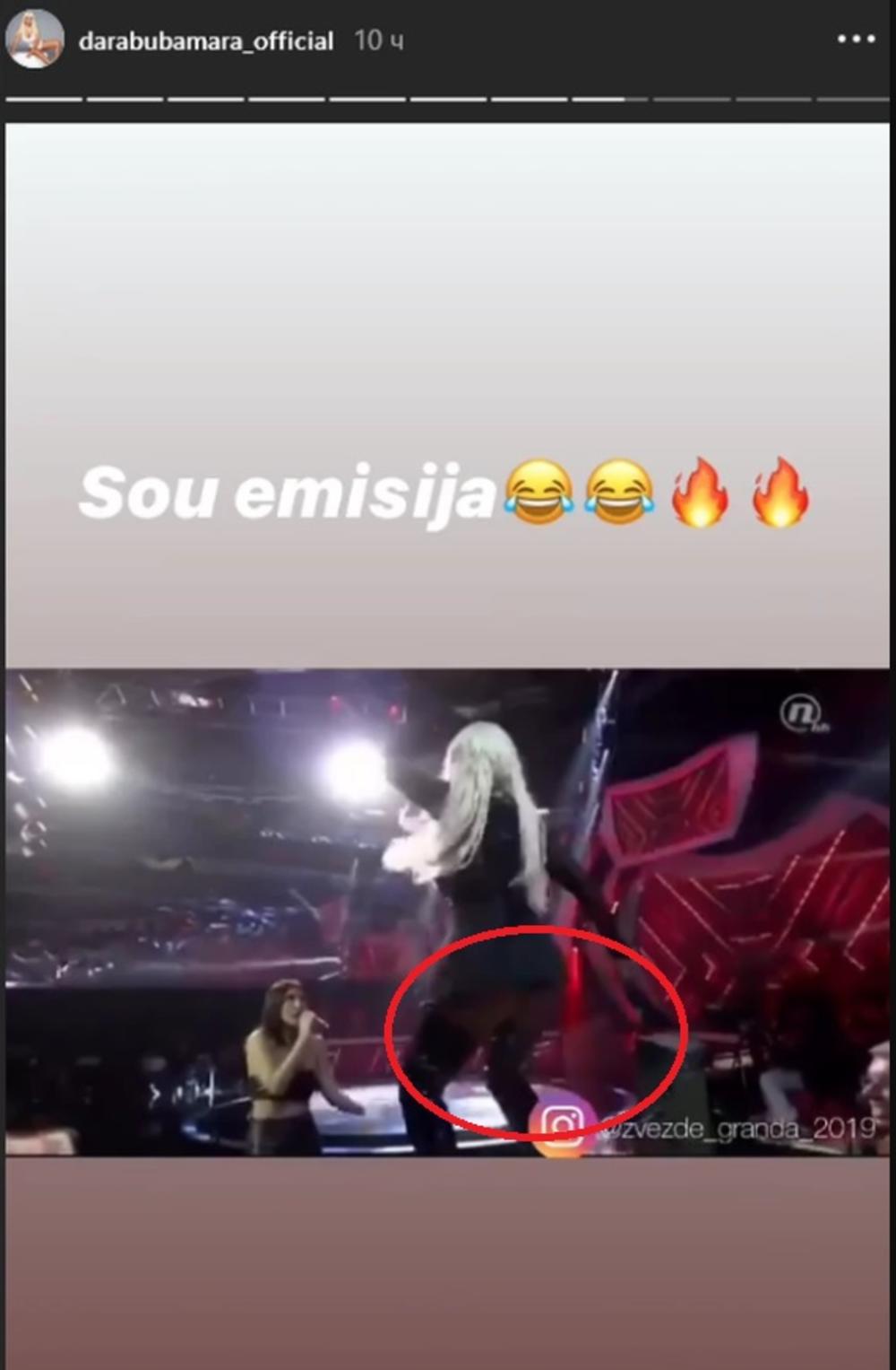 Dara nije obaćala puno pažnje na to, već je nastavila da meša, a na svojim društvenim mrežama je prokomentarisala "kakva šou emisija" sa emodžijem vatrice.