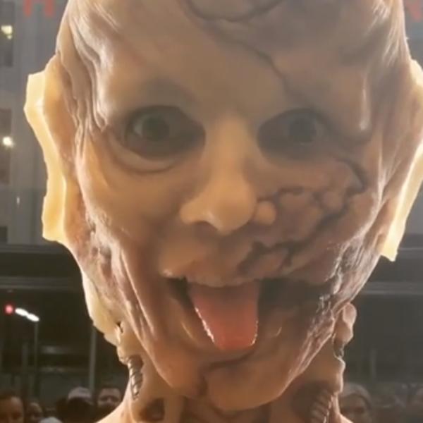 Una je cela bila u crnom, a na glavi je nosila rogiće, dok je osim jake šminke imala i đavolji rep iscrtan oko leve obrve.