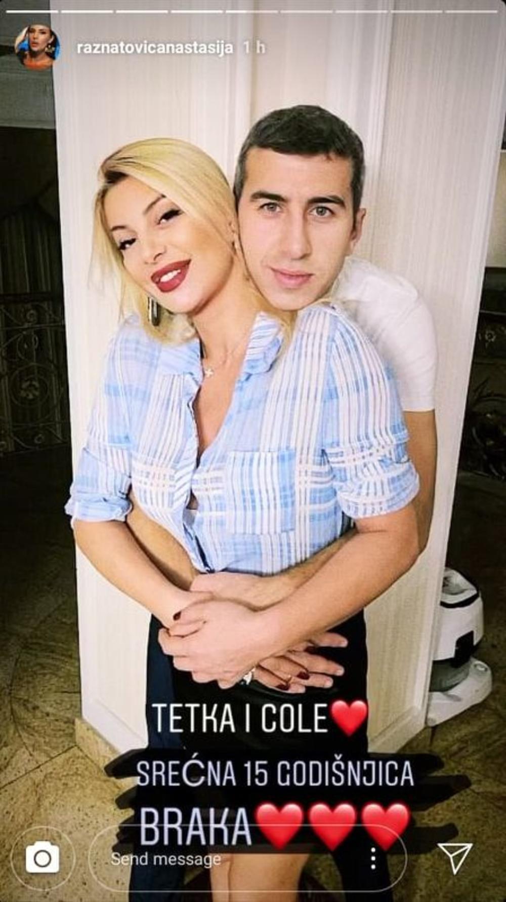 "Tetka i Cole, srećna 15. godišnjica braka", pridružila se čestitkama Anastasija Ražnatović.