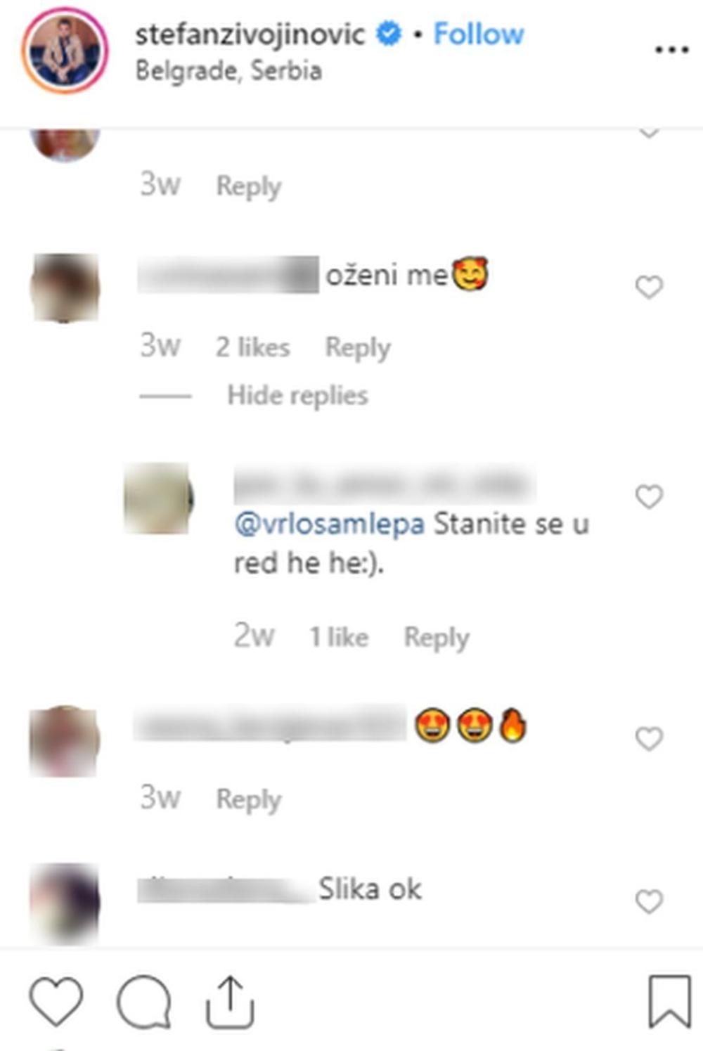 Međutim, jedna devojka je bila toliko direktna, da je Stefana bukvalno zaprosila u komentaru ispod njegove objave na Instagramu.