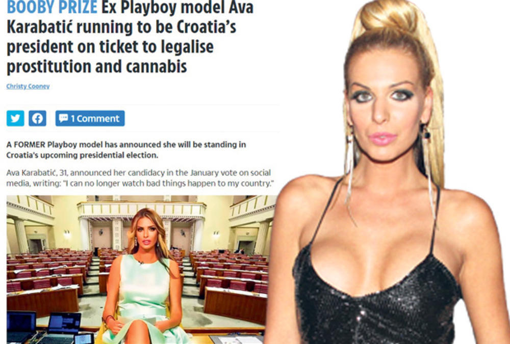 Ava Karabatić dospela je u britanske medije! Engleski tabloid San pisao je o starletinoj kandidaturi, navodeći da bivša Plejboj zečica želi da postane predsednica Hrvatske.