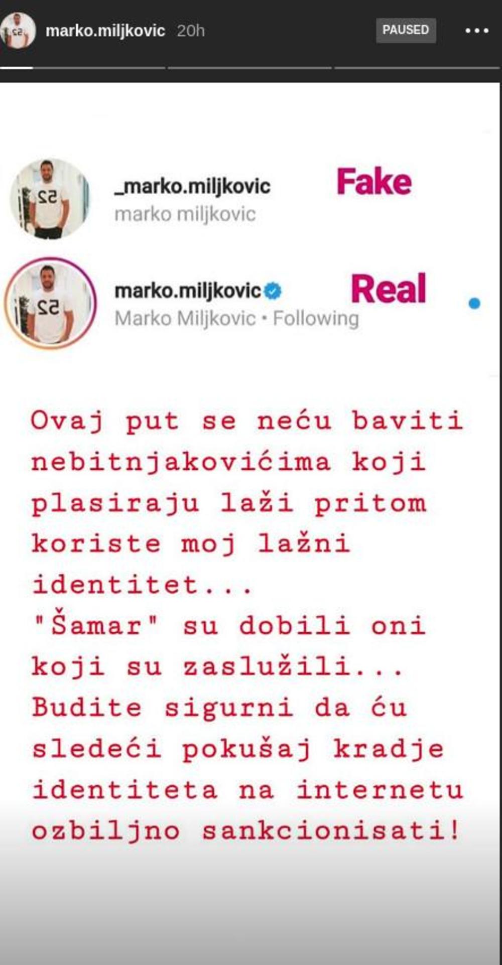 Marko Miljković je na svom Instagram profilu postavio javno obaveštenje koje je zabrinulo mnoge njegove pratioce. Naime, Miljković je otkrio da postoji njegov lažni identitet, ali po svemu sudeći, ovo nije prvi pokušaj krađe.