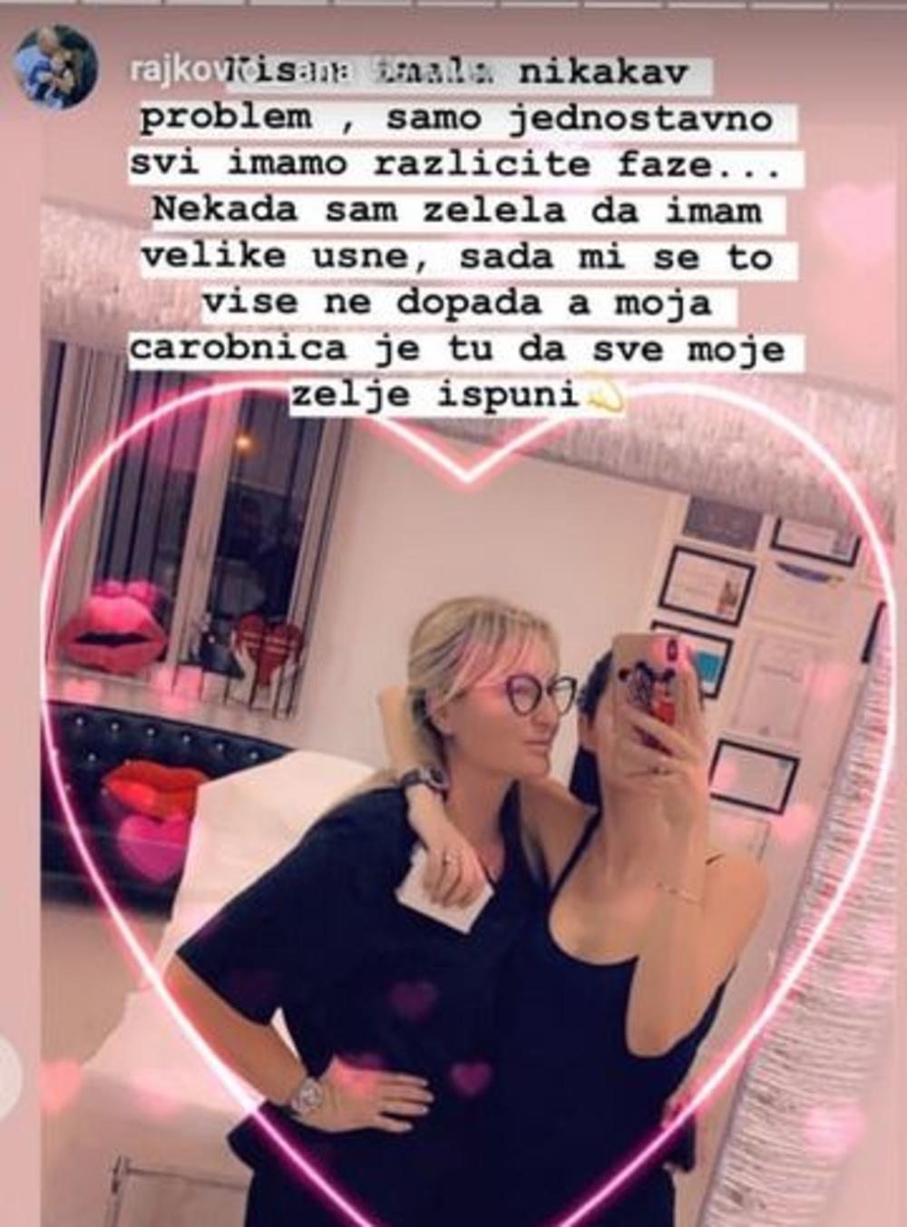 Nisam imala nikakav problem, samo jednostavno svi imamo različite faze. Nekad sam želela da imam velike usne, sada mi se to više ne dopada, a moja čarobnica je tu da ispuni sve moje želje", napisala je Ana koja se zahvalila za ovu intervenciju doktorki.