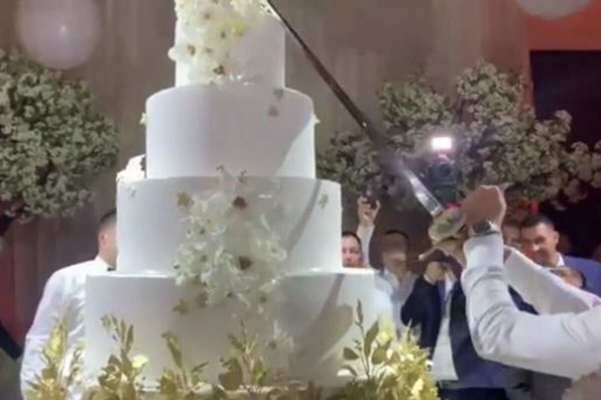 VELJKO TORTU PRESEKAO MAČEM! Pogledajte kako je izgledalo sečenje GLAMUROZNE TORTE na 6 spratova i 70 kilograma!