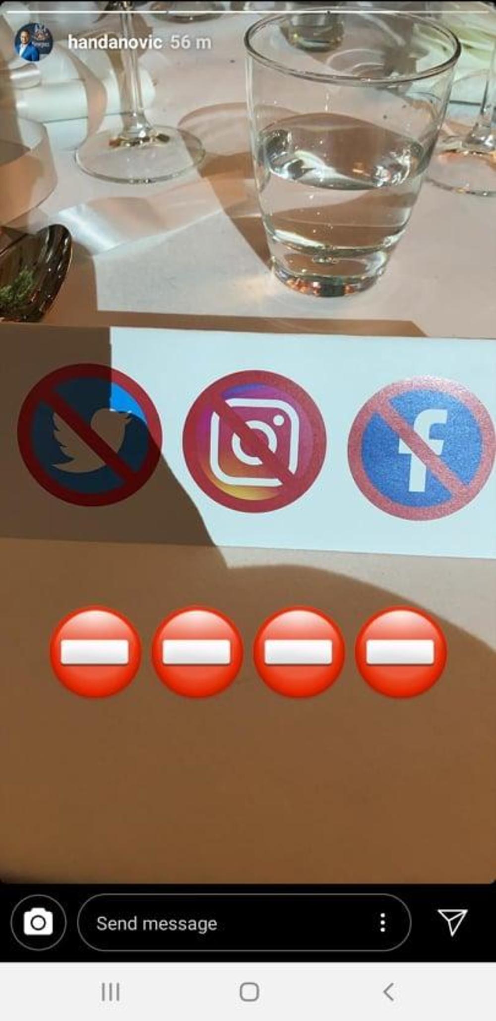 Na stolovima se nalazilo obaveštenje o zabrani korišćenja društvenih mreža. Zapravo jedino što je gosti trebalo da urade jeste da se suzdrže od objavljivanja na društvenim mrežama.