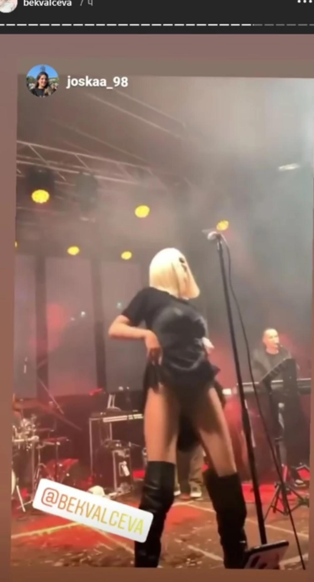 Poznato je da je Bekvalčeva na sceni izuzetno energična, te da na svojim nastupima sve vreme đuska, a sinoć je tokom izvođenja numere "Dođi mami" u jednom trenutku previše podigla haljinu pa su obožavaoci imali priliku da na nekoliko sekundi vide njen donji veš.