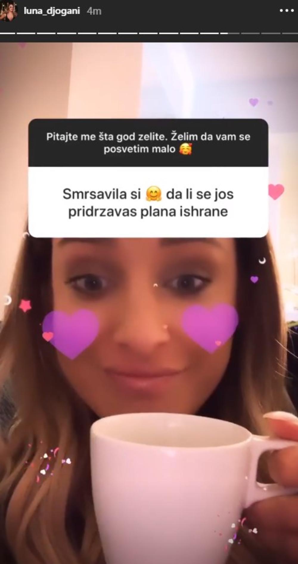 - Smršala sam, istina je. Mnogo mi je teško - rekla je Luna, koju su fanovi pitali i šta najviše voli da jede.