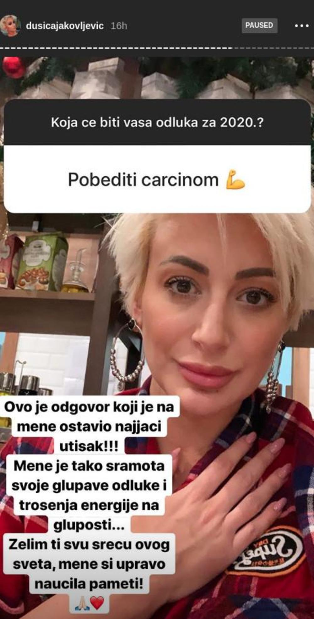 "Ovo je odgovor koji je na mene ostavio najjači utisak! Mene je tako sramota svoje glupave odluke i trošenja energije na gluposti. Želim ti svu sreću ovog sveta, mene si upravo naučila pameti", napisala je Dušica.