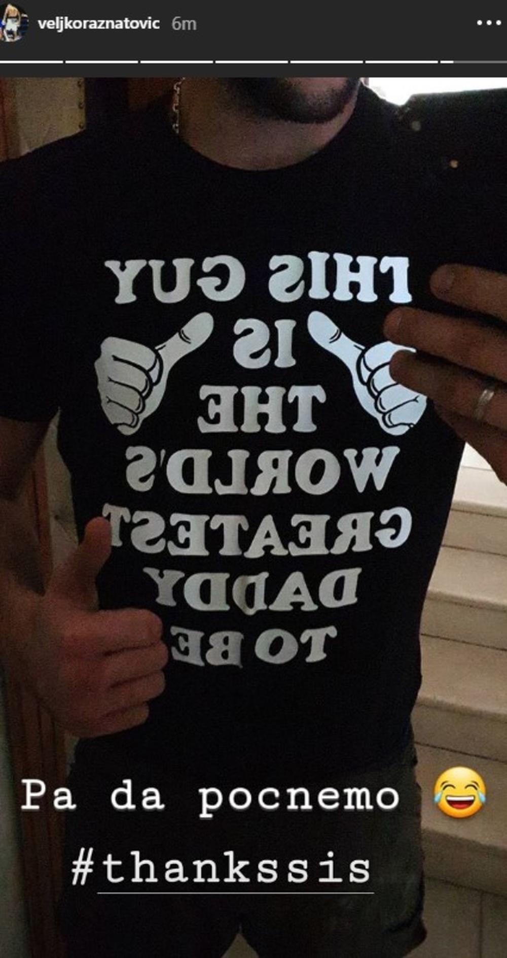 "Ovaj momak je najbolji na svetu budući otac", piše na Veljkovoj majici, a potom je Ražnatović dodao: