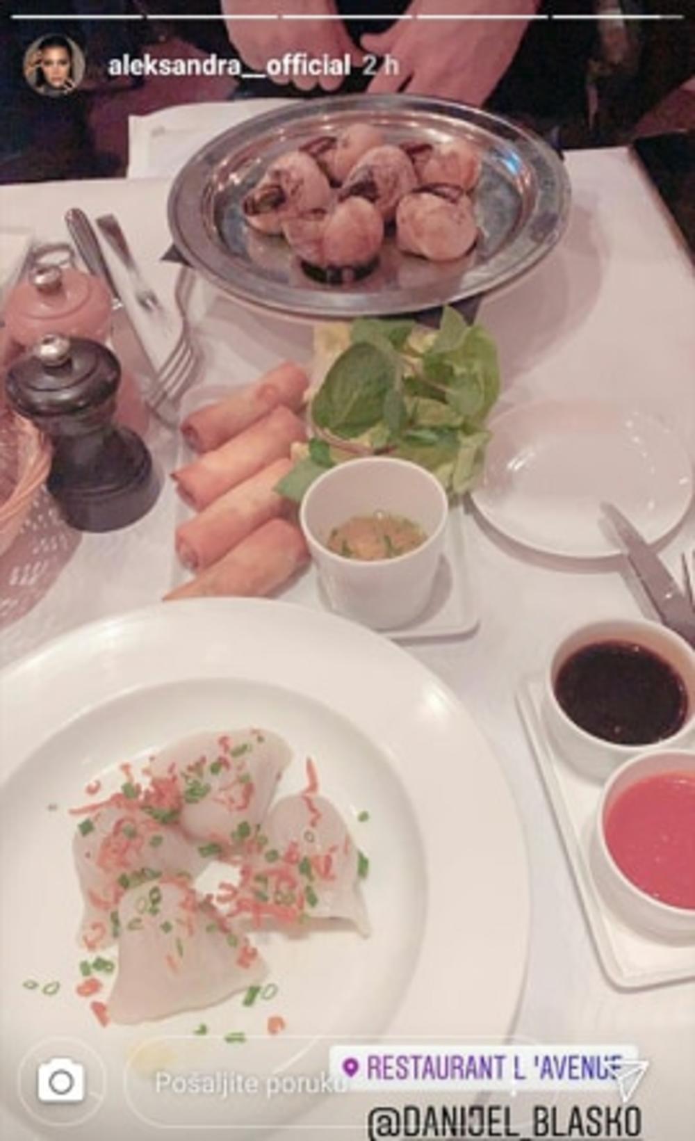 Aleksandra je na svoj Instagram objavila fotografije iz Pariza, a ono što je privuklo pažnju većini njenih fanova je slika sa ručka na kojoj je označen njen prijatelj i saradnik Danijel Blašlo na čijem profilu se mogu videti i ostale fotografije sa Aleksandrom.