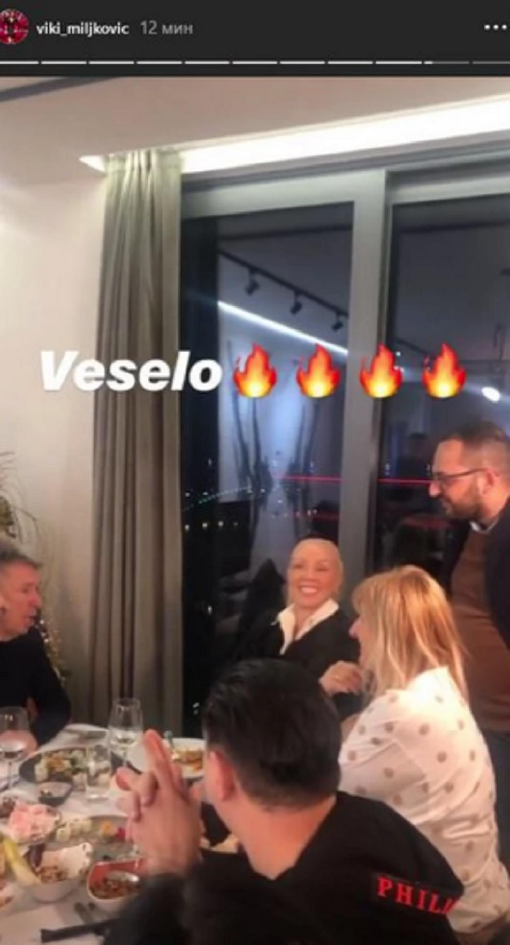 Među zvanicama kod Viki našli su se, između ostalih, kompozitor Damir Handanović, direktor "Grand" produkcije Saša Popović sa suprugom Suzanom Jovanović, pevač Boban Rajović, pevačica Jana, ali i Lepa Brena, koja je zaslužila počasno mesto u čelu sofre.