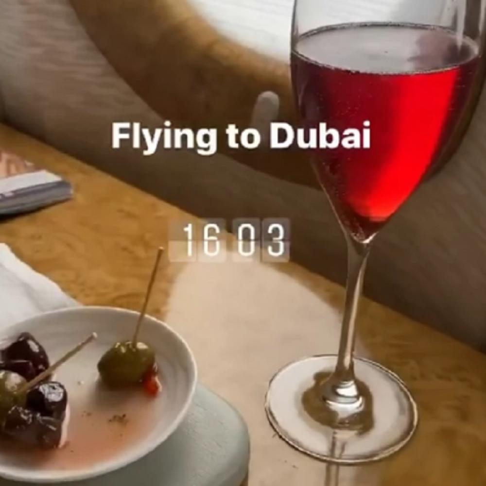 Pevačica je, naime, objavila fotografiju iz aviona, gde je uz piće i hranu otputovala za Dubai.