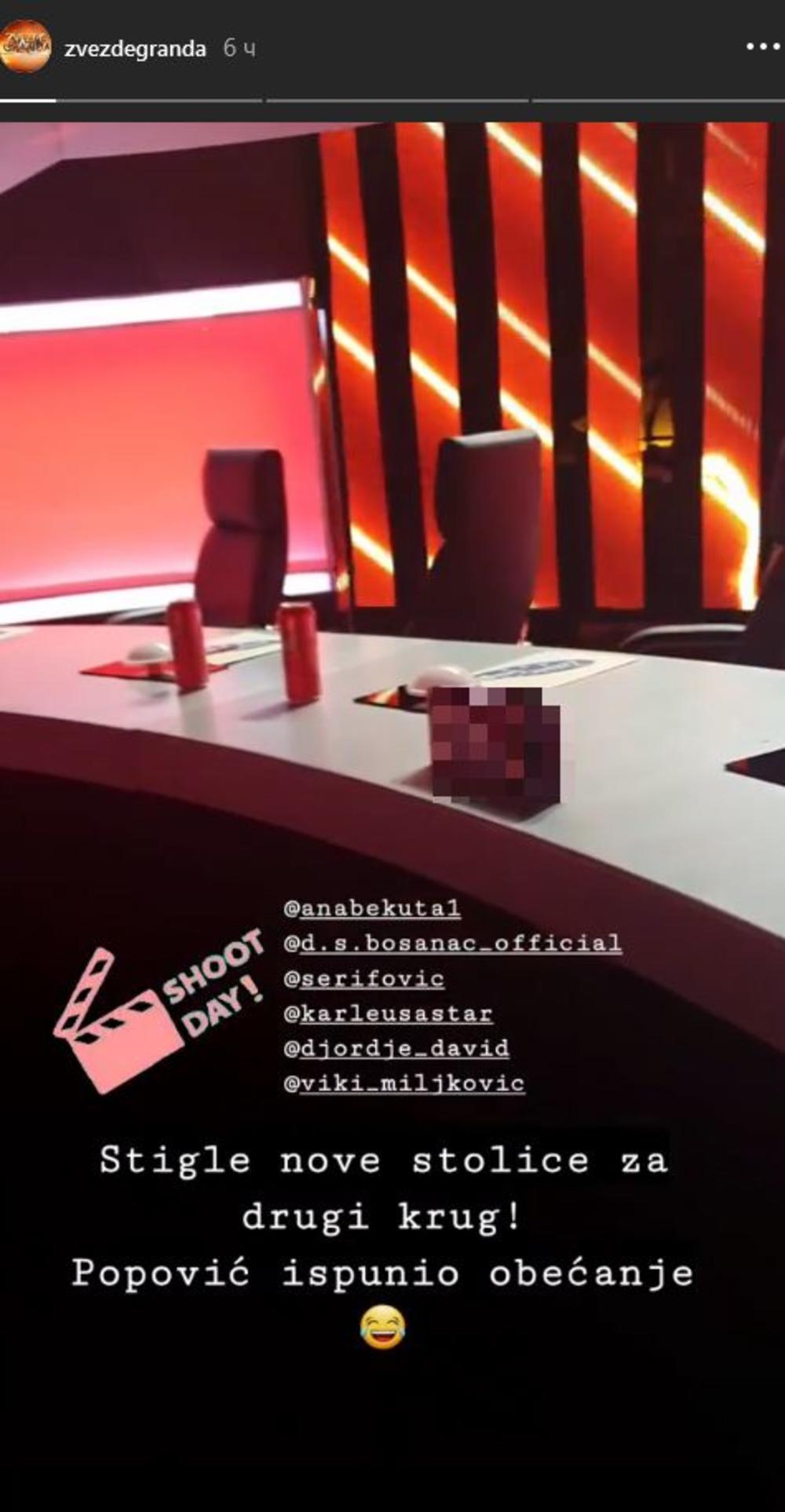 - Stigle nove stolice za drugi krug! Popović ispunio obećanje! - stoji u objavi na zvaničnom Instagram nalogu ovog šoua.